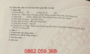 Diện Tích: 636m2 – 100% đất ở, Rộng: 23m. Gía: 7,x tr/1m2. { Đã có sổ } , Nằm cách Trung Tâm Huyện ủy và TT Như Quỳnh 6Km, Cạnh khu công nghiệp Đại Đồng , Gần trường Mẫu giáo, Cấp 1,2,3 Bán kính trong 1km…. Đa Dạng diện tích, có thể phân lô hoặc xây biệt thự…vv